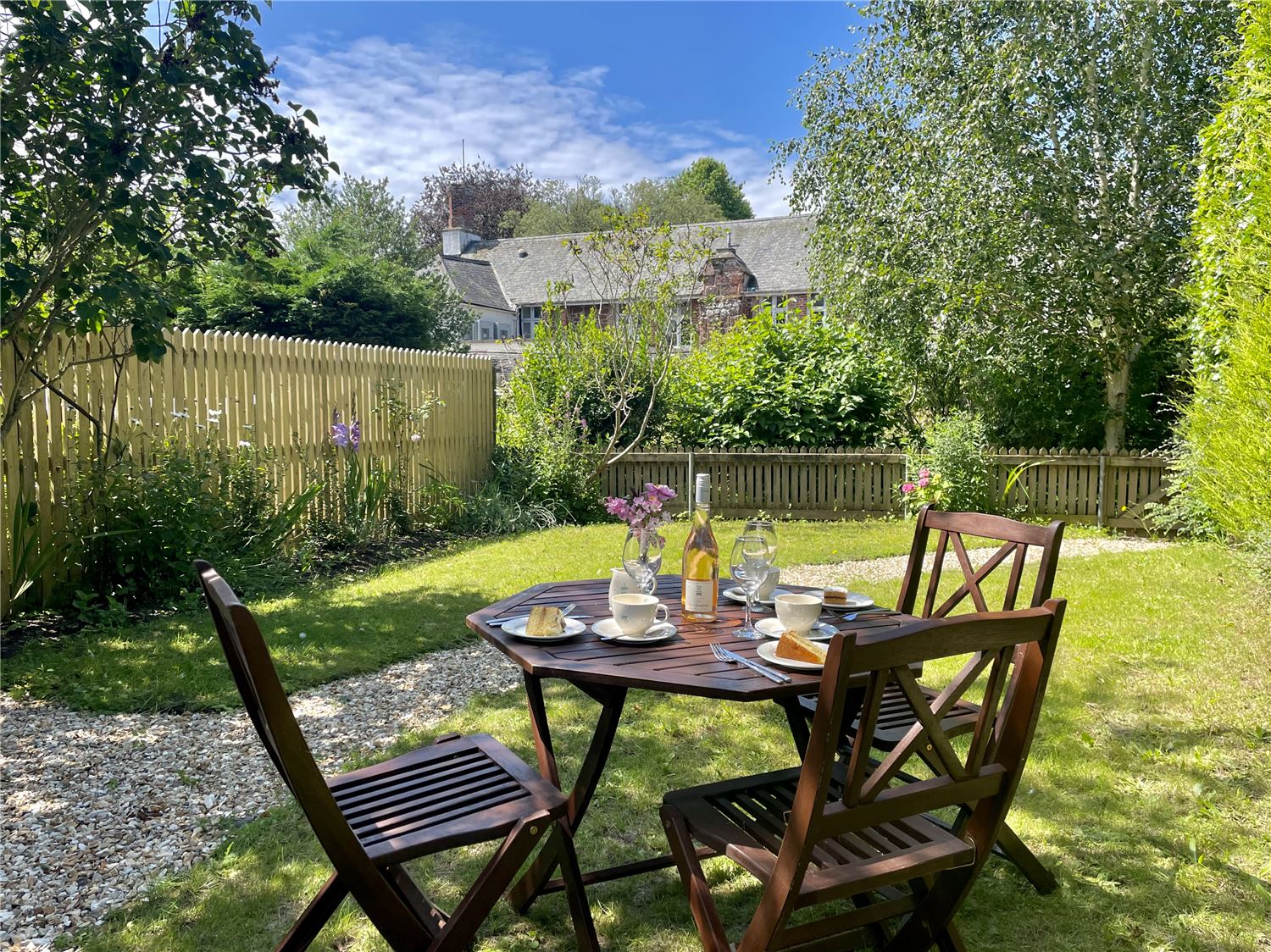 The property consists of two first floor bedrooms, one double and one single, along with a bathroom featuring a shower over bath. A cot bed is available for infants. Primrose has two living rooms on the ground floor, one of these rooms has a sofa bed which can be made up on request to accommodate extra guests. A step down from the dining and living area is the fully equipped kitchen, fitted with a large fridge freezer, microwave, washing machine, dishwasher, electric oven and hob. There is also a downstairs WC and small courtyard area to enjoy a cup of tea or glass of wine. Outside, take a stroll down the gravelled path to a private garden with seating area and access to the garage, which holds a tumble dryer and offers a convenient space to store any bicycles.